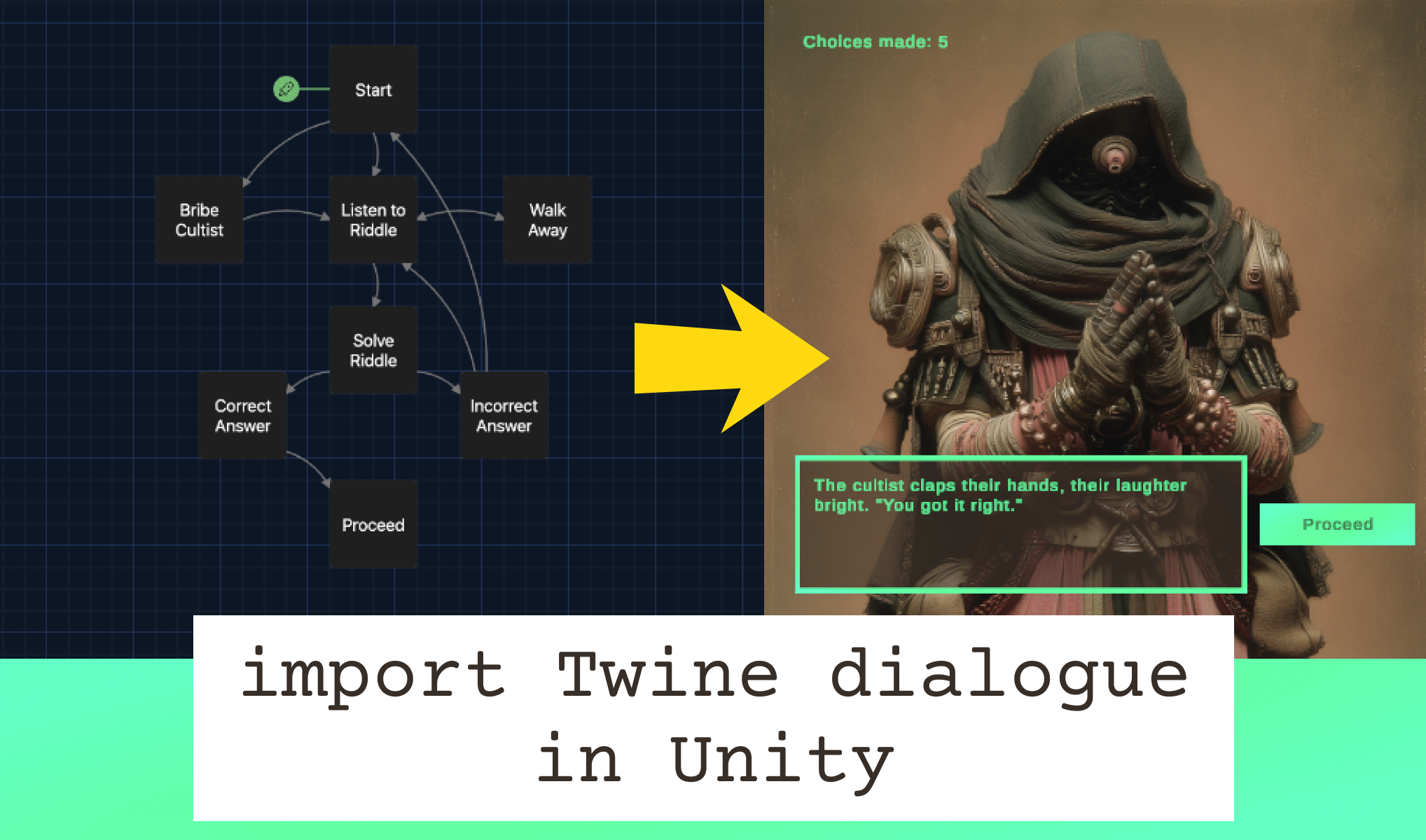 Easily add branching dialogue to your projects using Twee files made with Twine.